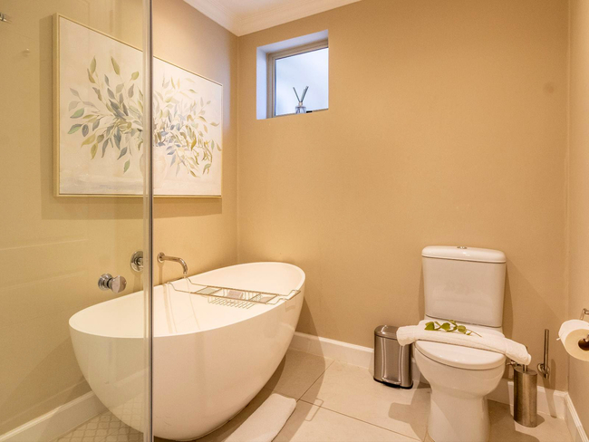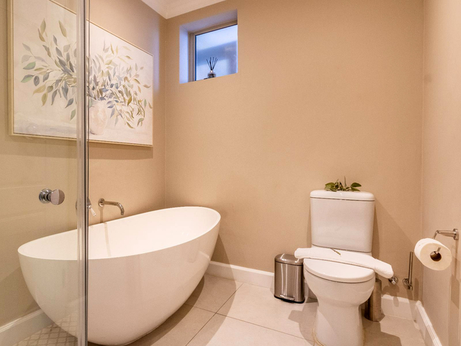 The bedroom offers a calm and inviting sanctuary, furnished with a king-size bed and complemented by a luxurious en-suite bathroom. The bathroom includes a separate bath and shower, along with quality bathroom amenities and a hairdryer for added convenience.