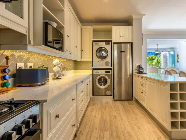 The fully equipped kitchen makes self-catering easy, with a stove, oven, microwave, refrigerator, dishwasher, toaster, and coffee and tea-making facilities. Laundry needs are met with a washing machine and tumble dryer. Outside, guests can relax on the balcony or enjoy a braai/barbecue using the outdoor furniture, making the villa ideal for both restful escapes and social gatherings.