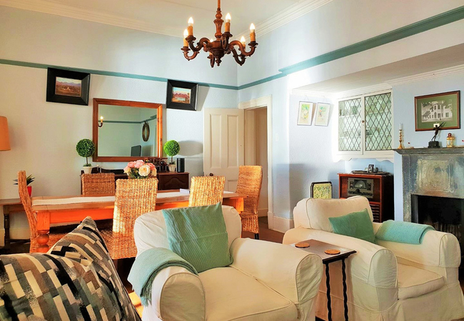 There are two comfortably furnished, spacious lounges and a fully equipped self catering kitchen complete with dishwasher and laundry facilities. The lounge has a fireplace and is equipped with DStv and there is a dining table for six.