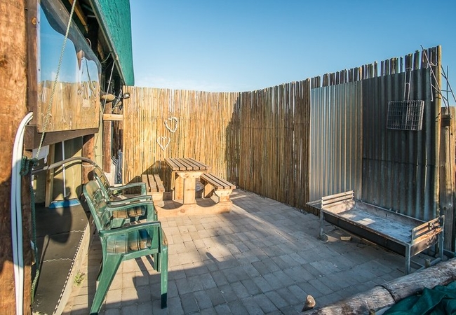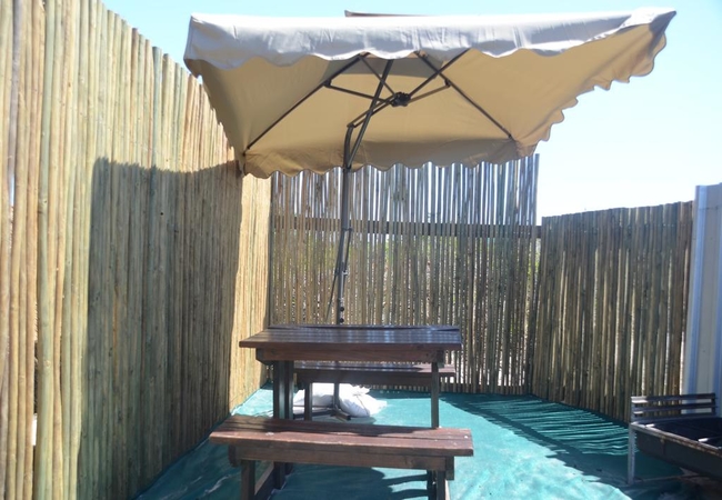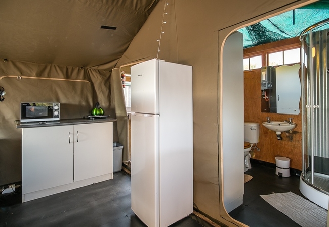 Luxury tent with private en-suite bathroom. Fully equipped with fridge, stove and catering utensils. Small kitchenette and a private braai area for each tent. The tent sleeps two people in a double bed.