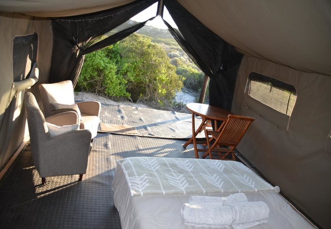 Situated halfway between Dwarskersbos and Elands Bay, West Coast Luxury Tents is on a private beachfront farm that has no public access. The beach is accessible with a 4x4 vehicle and there is a private airstrip for light aircraft.