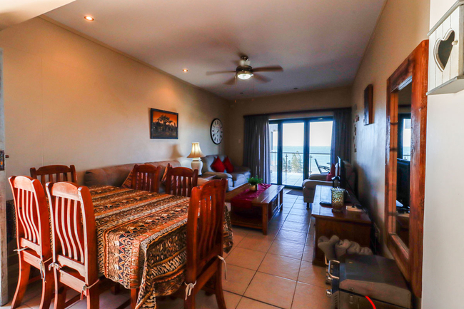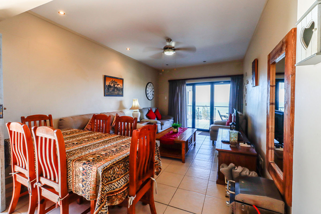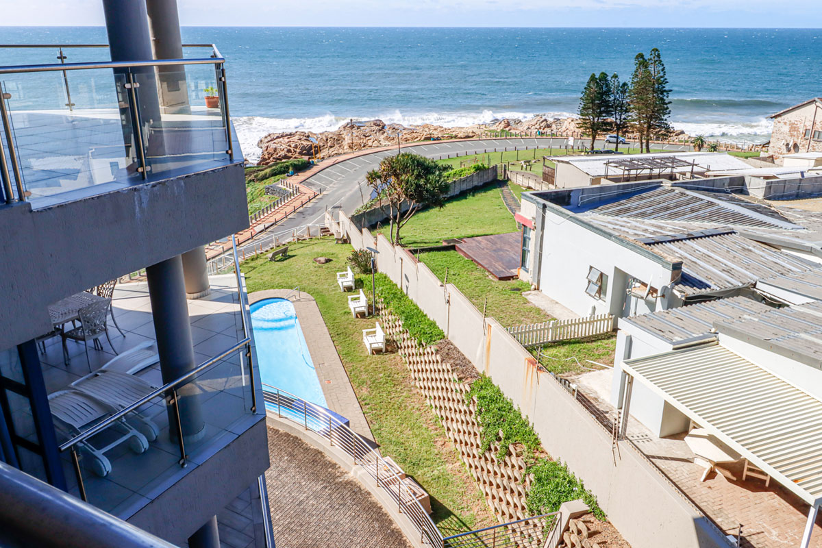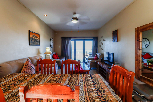 Large sliding doors open from the living area onto a spacious balcony furnished with outdoor seating, providing the perfect setting to take in the uninterrupted sea views. Guests also have access to communal amenities including a swimming pool and braai facilities. Secure parking is provided for one vehicle.