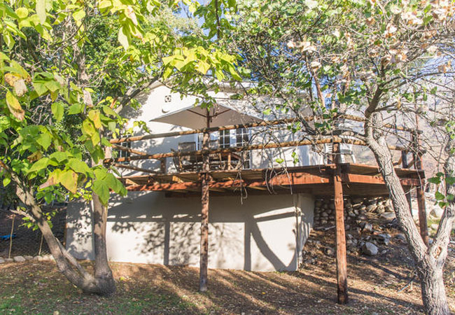 Outside is a lovely wooden deck with mountain views. Braai facilities are available.