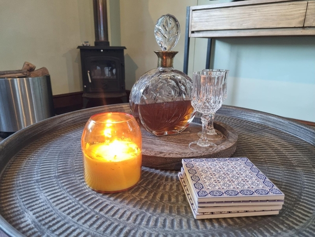 The open-plan layout provides a comfortable retreat for two, featuring a cosy bedroom and sitting area warmed by a fireplace. The private bathroom is elegantly fitted with a separate tub and shower, complete with complimentary toiletries and a hairdryer.