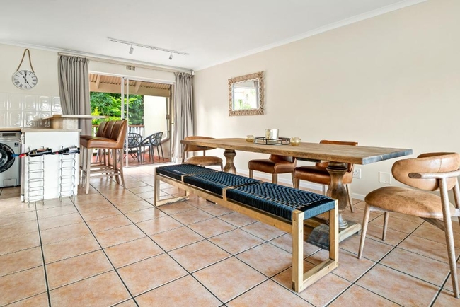 The interior features a contemporary layout with a generous lounge and dining area, tiled flooring and inviting seating. The kitchen is fully equipped with a refrigerator, oven, stovetop, microwave, dishwasher, toaster, electric kettle and comprehensive kitchenware, ensuring a seamless self catering experience. Additional conveniences include a washing machine, drying rack and ample storage, while the barbecue and outdoor dining furniture provide an ideal setting for relaxed meals.