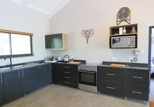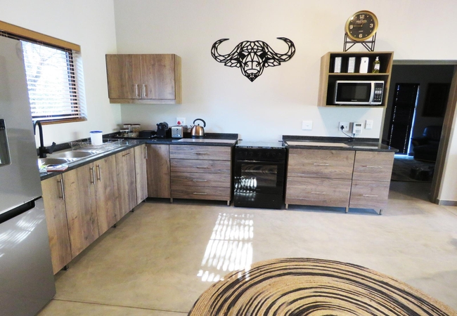 The Nyala Cottage offers a high level of privacy and is perfect for couples. The Cottage is made up of a Queen size bed, fully equipped kitchen, bathroom with shower, built in outside braai area and it's own private entrance. This unit can accommodate 2 adults.