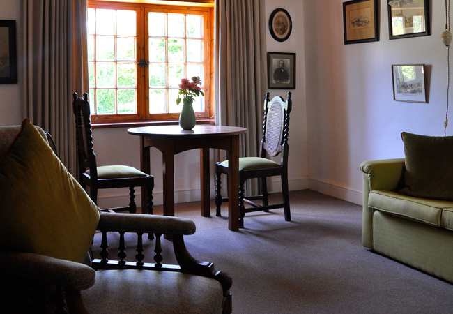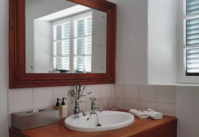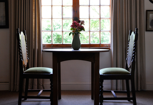 An authentic Cape cottage. Dramatic garden and mountain views, bordered by Birch trees. Two en-suite rooms separated by kitchenette. King / twin bed, antique furnishings. Second room doubles as living area with TV and dining. Outdoor dining and BBQ on verandah.