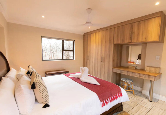 Wake and go to sleep with the beautiful African bush in full view from your bedroom. Watch the warthogs as they go about their business, or a zebra and other interesting and wonderful wildlife. You might even have a giraffe visit you while sipping your morning coffee.