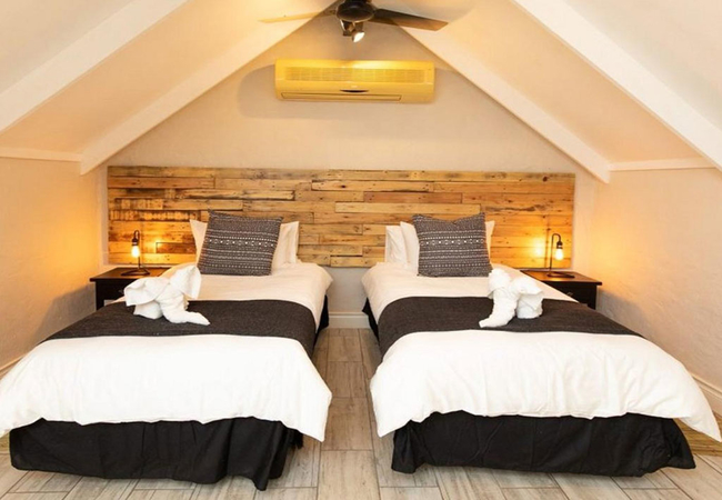 Wildheart Zesty Zebra has one bedroom furnished with a Queen-size bed. The bathroom is fitted with a shower, toilet and basin.