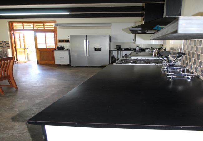 This room consists of 2 three-quarter beds which share an exquisite bathroom with Room 3. The room has its own patio with an incredible view over the garden, swimming pool, and wild game. There is a Full kitchen on the premises to share.