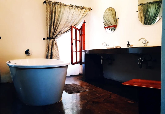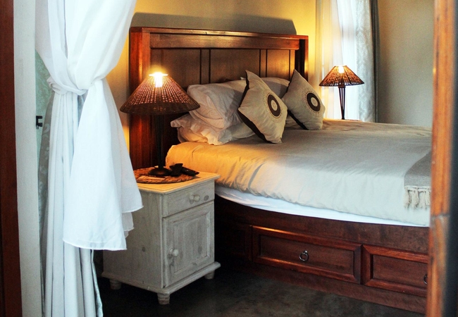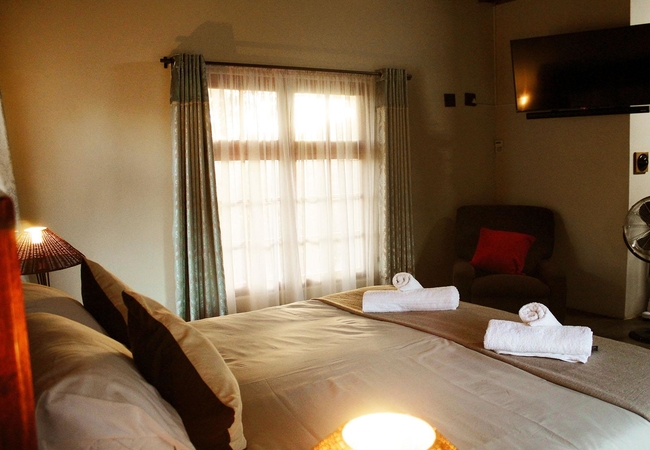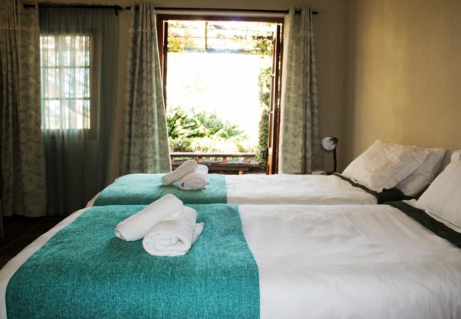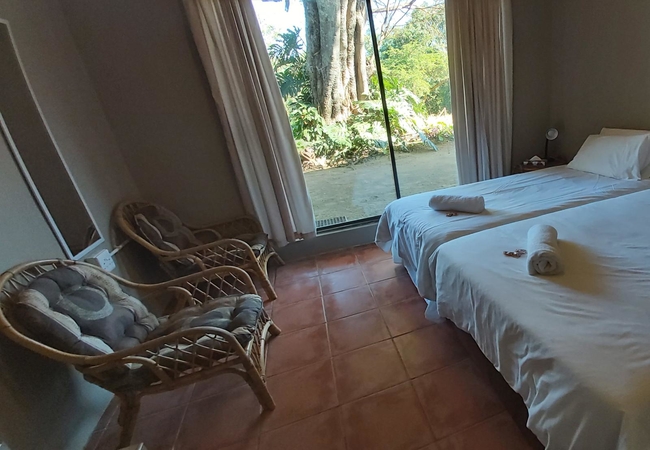 This room consist of 2 three-quarter beds which shares an exquisite bathroom. The room has its own patio with an incredible view over the garden, swimming pool and wild game. There is Wi-Fi and internet television available.