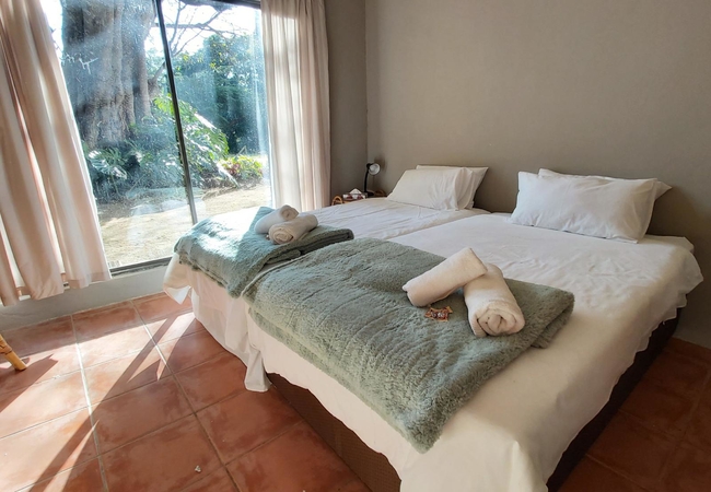 This beautiful room has 2 three-quarter beds with an en-suite bathroom that consists of a shower and a toilet. This room have access to its own veranda with a beautiful sight of the wild game and mountain. Free Wi-Fi. Shared kitchen facilities.