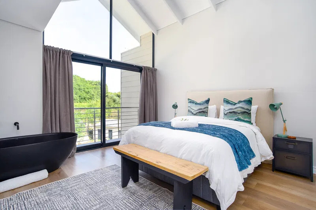 In the newly developed Constantia Kloof Village complex sits this modern home. It has stunning views of the bush and is conveniently close to the Wilderness Village center, the Touws River and a few minutes' drive to the nearest beaches.