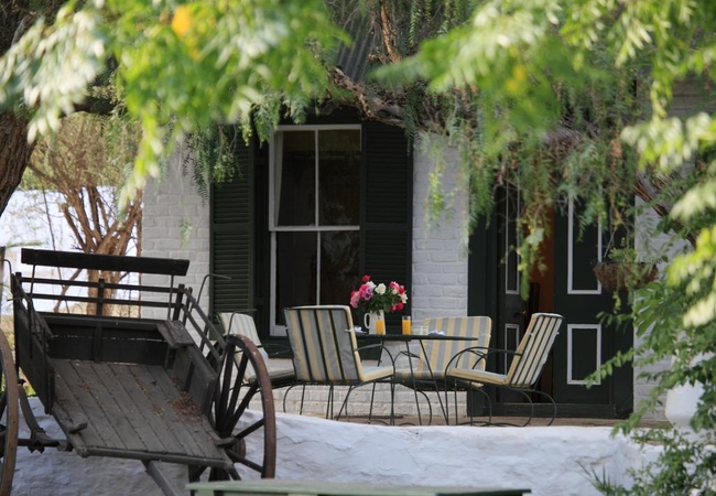In the lounge, the genuine Victorian fireplace sets the atmosphere for winter nights in the Karoo. Guests find it the perfect place to gather and relax after dinner in front of the cheerful log fire until it is time to turn in for a well-earned night's rest or alternatively meet new friends in our cosy bar. Appetizing meals are served to both residents and casual visitors in the dining room, with its antique furniture and local artifacts.