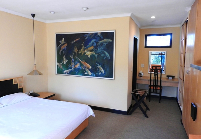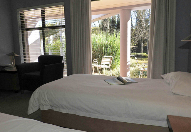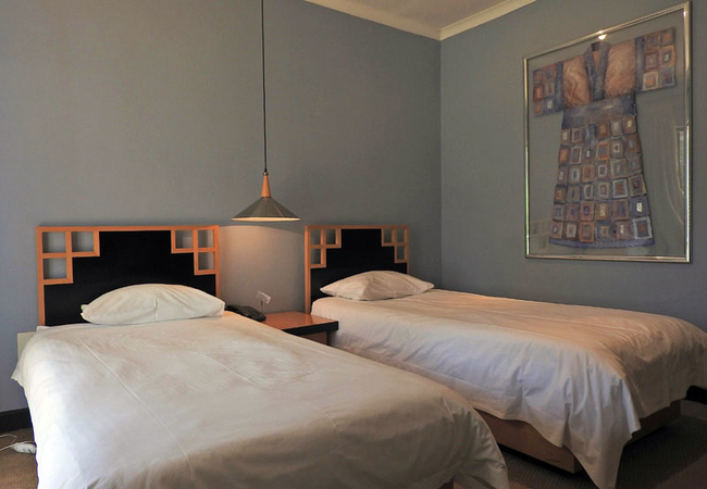 1x Twin Room (2 x single beds) Blue Room. Private entrance and view of Garden Lake. Bar fridge, TV, complimentary tea, coffee and rusks. En-suite bathroom with hand shower and heated towel rail. Complimentary basic amenities supplied. Hair dryer and safe.
