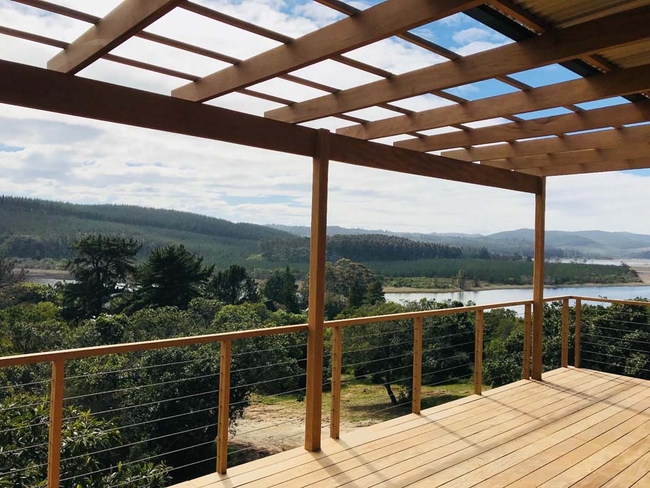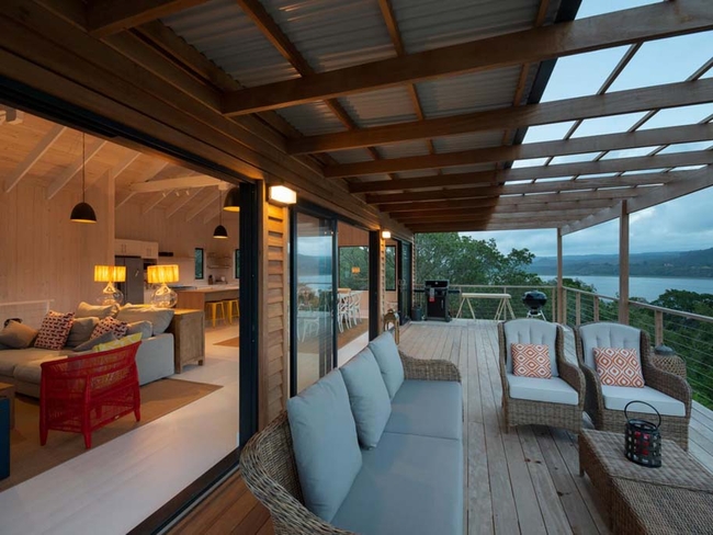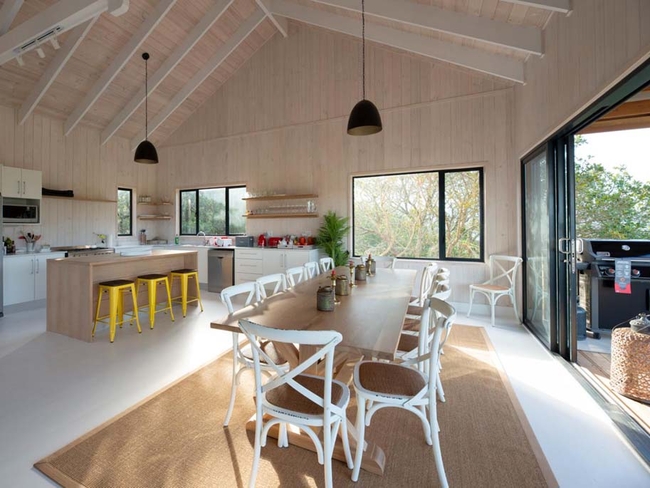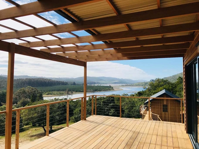 The double-storey main house at Willow Point boasts sweeping 180-degree views from its expansive main deck, complemented by an open-plan kitchen, living, and dining area. The main house comfortably accommodates 4 adults and 4 children, while two additional two-bedroom timber cabins provide room for 8 more guests. The main house can be rented independently, with the cabins available as optional add-ons. However, the cabins are not rented out separately.