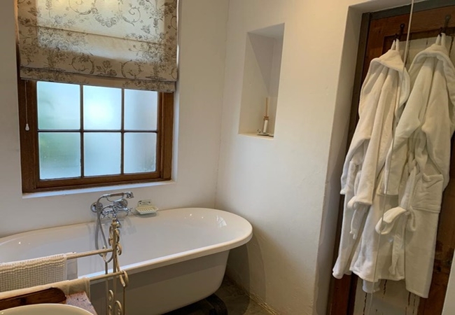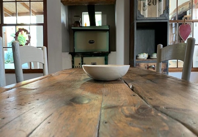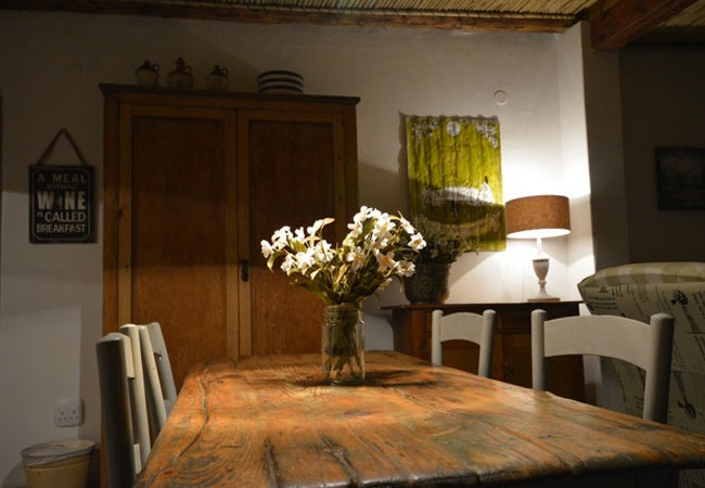 Windpomp Holiday Cottage in Prince Albert is decorated in cool shades with a rustic feel and has the original Glenwood delux woodburning stove to ensure warm cosy nights even during our cold winters. The bedroom is furnished with a double bed and the bathroom is fitted with a bath, shower, toilet and basin.