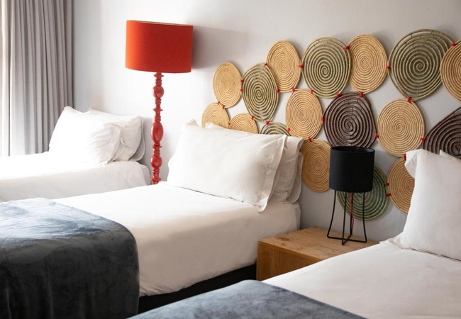 The Double Deluxe Room is modernly decorated with South African touches and located on the first floor. It contains a double bed, a safe, a hairdryer, a mini fridge, an electric kettle, a flat-screen TV and air conditioning and heating. The private bathroom has a hot shower, a toilet, towels and free toiletries. The room size is 21 square meters and the maximum capacity is 2 people.