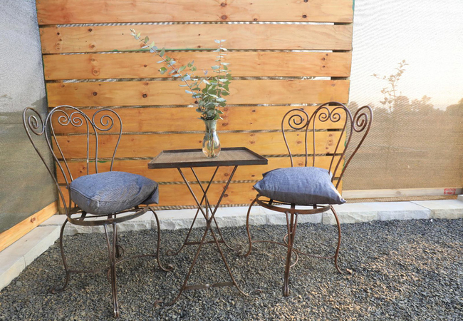 Double doors lead outside to a paved patio and a seating area. Free Wi-Fi is available.