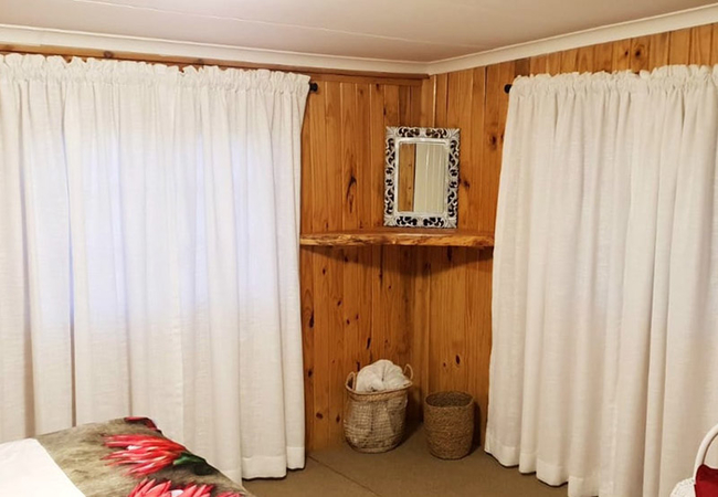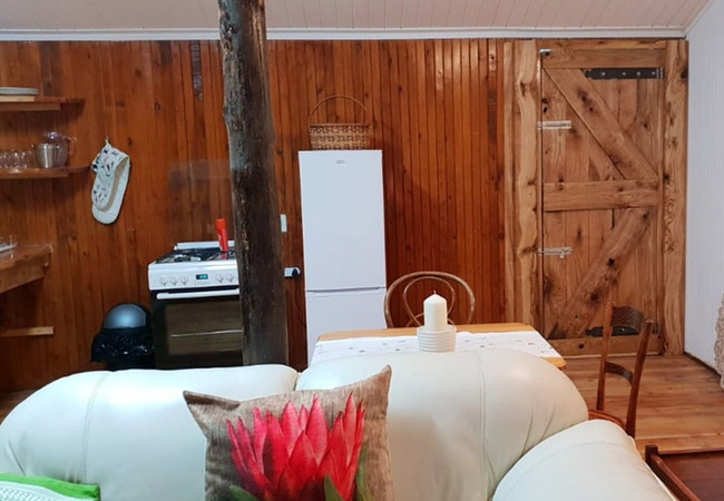 Woodys Cabin is a private cottage, well-equipped with everything guests may need for a truly comfortable stay. The cottage consists of one bedroom, one bathroom, a large kitchen and a lounge area. The bedroom makes use of a King-size bed and an en-suite bathroom with a shower, toilet and a basin. Linen is supplied. The cosy living area, which opens onto a private verandah, is furnished with a comfortable sleeper couch for a child, a fireplace and a TV with DStv / satellite channels. The fully equipped kitchen is perfect for self-catering and includes a microwave, stove, toaster, fridge / freezer, kettle and ironing facilities. Outside on the undercover verandah is outdoor furniture for guests to enjoy the gorgeous mountain views that are on offer. The peaceful walks or hikes can be enjoyed in the surrounding area.