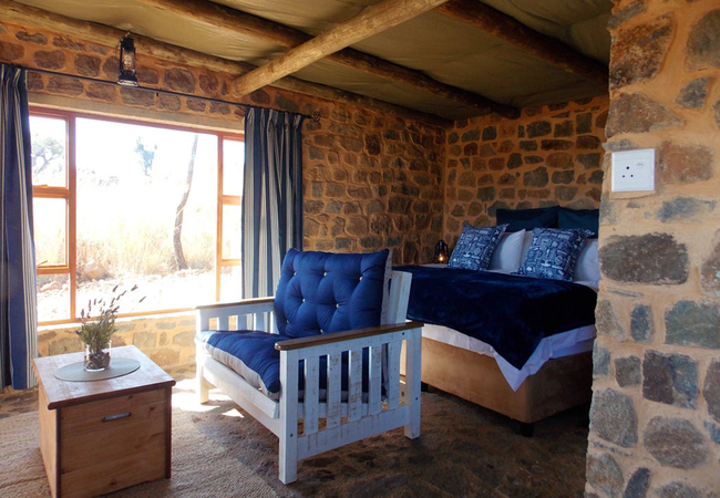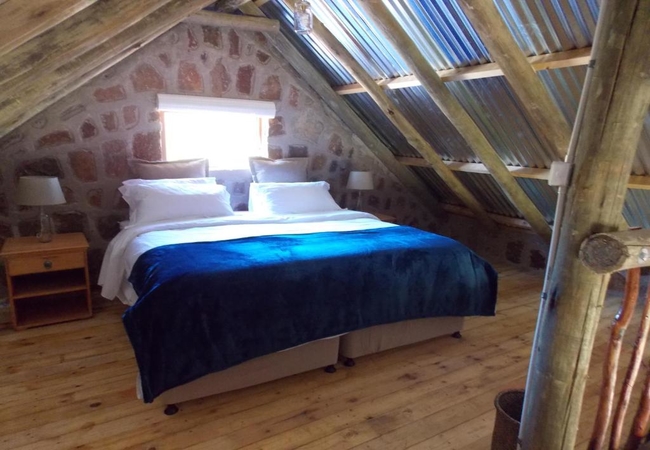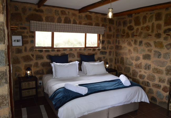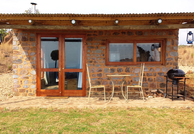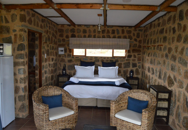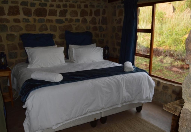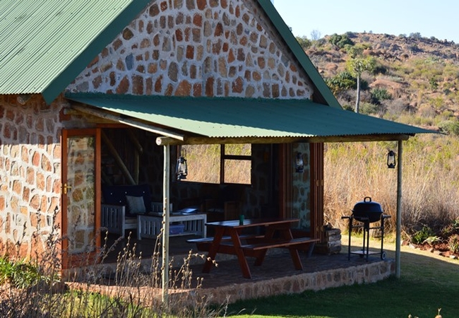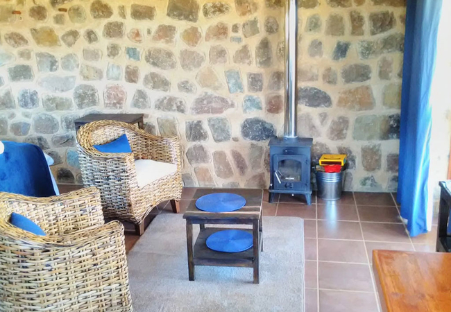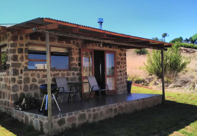 Marabou Cottage is a cosy stone cottage, perfect for two guests. The cottage has an open plan sitting area, kitchenette and sleeping area. Bathroom with bath and bath shower. Fireplace and patio with portable braai. View over the dams.