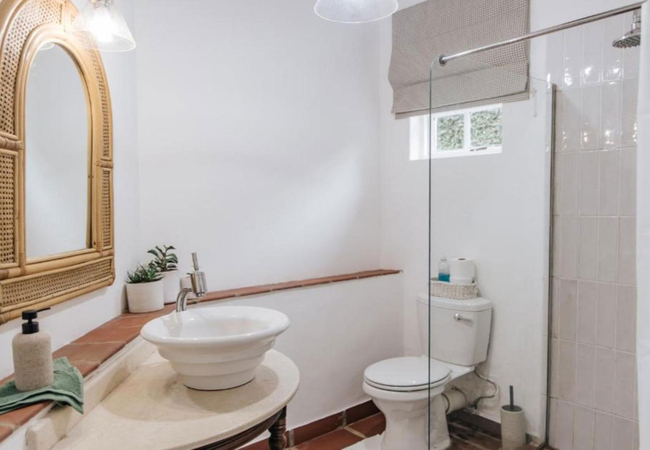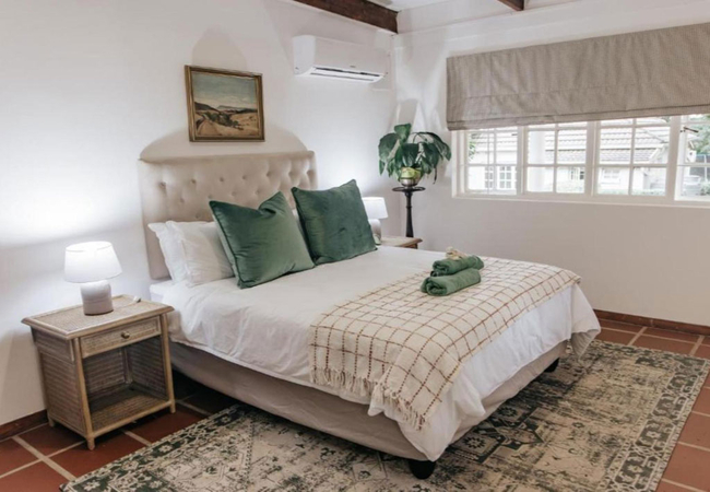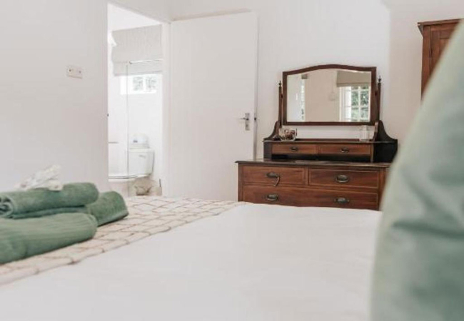 Wylde Rose Cottage in Pietermaritzburg has one bedroom furnished with a double bed. The en-suite bathroom is fitted with a shower, toilet and basin.
