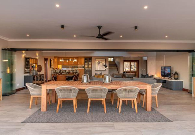 Outside the expansive deck has a swimming pool, loungers, an undercover area with a dining table and built in braai. There is also a large private boma where you can sit around a central fire and share stories of the day.