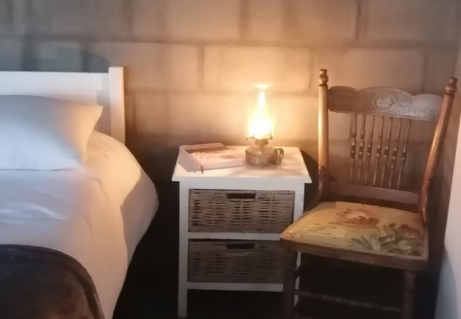 Our self catering farm cottage sleeps two people. The bedroom is furnished with a double bed and has an en-suite bathroom fitted with a shower, toilet and basin. The Cottage also has a small in-room open-plan, fully equipped kitchen, as well as a veranda with a fireplace.