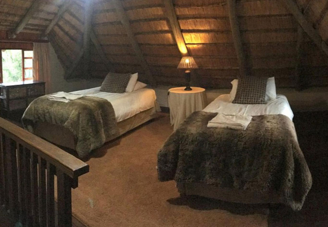 Zebra Cottage can sleep up to seven guests in two bedrooms and a loft room. The first two bedrooms are furnished with a Queen-size bed and the loft room has three single beds. The two bedrooms have an en-suite bathroom fitted with a bath or a shower. There is also a guest toilet. The kitchen is fully equipped for self catering. There is a dining area. The huge lounge has a TV with DStv and a fireplace. Outside there is a large private veranda and BBQ / braai facilities.