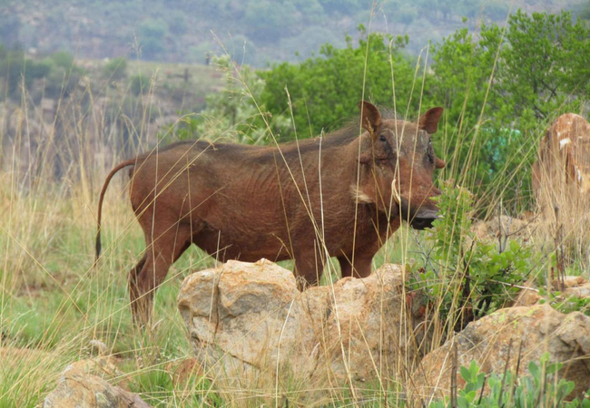 This untouched expanse of 1200ha with its thorn bushveld and highveld grassland offers an unparalleled experience to nature lovers. The biodiversity creates a perfect environment for the prolific birdlife and a wide range of indigenous trees, shrubs and wild flowers. Game on the farm includes zebra, blue wildebeest, eland, kudu, blesbok, warthog, duiker and many more.