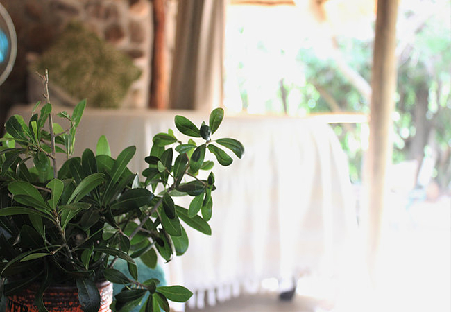 Charming, unusual family rooms with shower, basins and toilet semi outside. Set with trees and shrubs. Furnished with a double bed and one single bed. There is an en-suite bathroom with shower, hand basin and toilet. Other facilities include tea and coffee station and bar fridge.