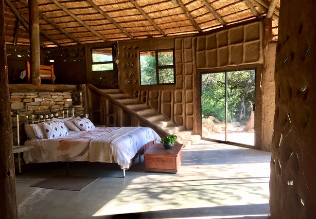 Shayamoya (where the wind blows) is furnished with two three quarter beds. It is equipped with an outdoor bath, shower and basin. With its own private reading or sundowner spots. The outdoor bath is pure relaxation! Soak up the bubbles with a view of the Tugela river.