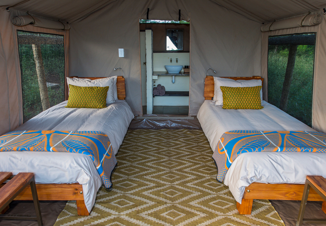 The main lodge on site has a swimming pool, a boma area where you can enjoy camp fires under the stars, a guest lounge and large dining area.