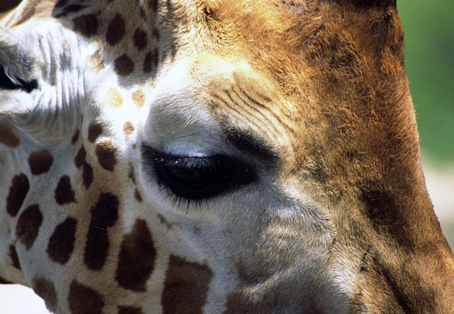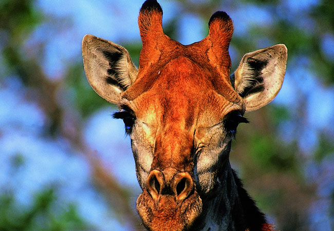 Giraffes have "horns" not true horns but knobs covered with skin and hair above the eyes to protect the head from blows.