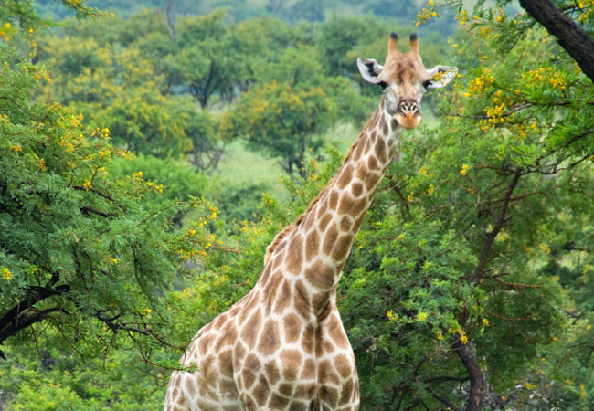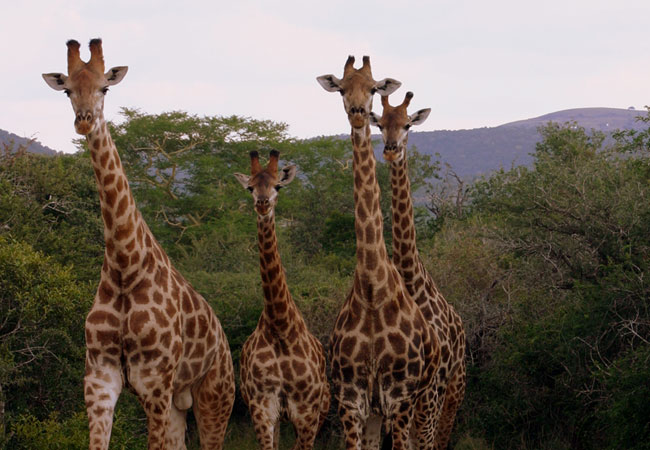 Giraffes are graceful, and watching them eat off the tops of the trees or stoop down for a cool drink at the watering hole is memorable. In the Eastern Cape, they can be found at the Addo Elephant National Park, Shamwari Game Reserve, and Kariega Game Reserve; which are all situated just outside Port Elizabeth, close to Grahamstown. They also live in Phinda Private Game Reserve in KwaZulu-Natal, and the Tsitsikamma National Park along the Garden Route.