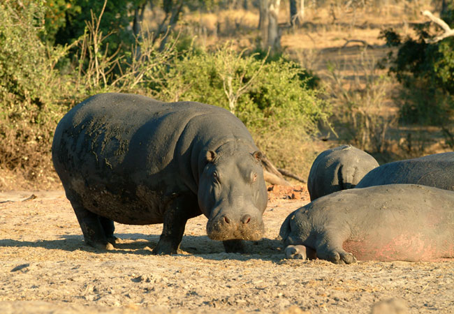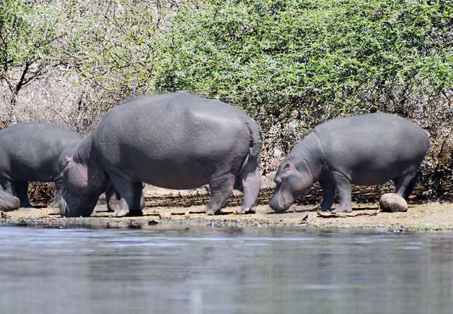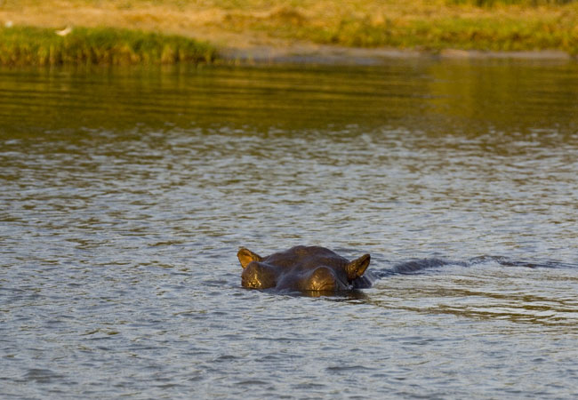 Hippos need water deep enough to cover them, within commuting distance of pasture. They must submerge because their thin, naked skin is vulnerable to overheating and dehydration. They avoid rapids, preferring gently sloping, firm bottom where herds can rest half-submerged and calves can nurse without swimming.