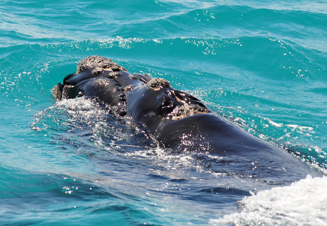Depending on gender, habitat and the availability of food, the Southern Right Whale adult can weigh between 30 and 80 tonnes.
