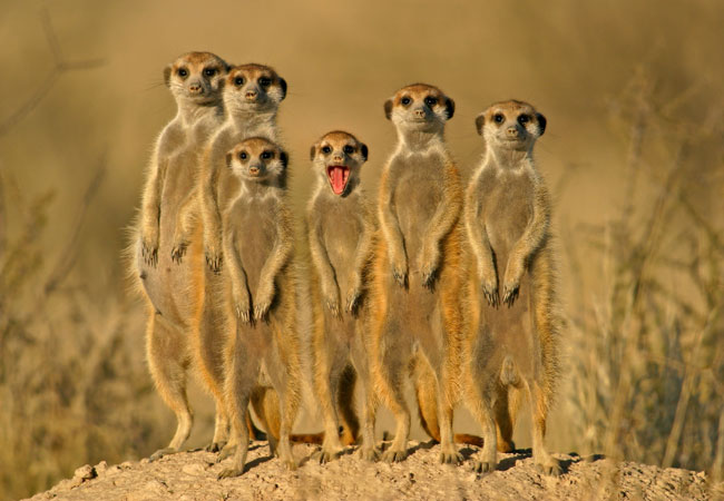 Did you know? Adult Meerkat take it in turns to stand on sentry, finding a convenient vantage point where they can watch for predators, such as eagles.