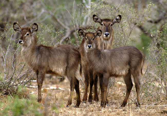 Waterbuck have many predators including hyenas, lions, leopards, cheetahs, wild dogs, crocodiles, humans.